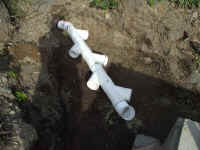 ![]() As the rain leader rose above the perimeter drain we were able to bring it progressively closer to the foundation. |
