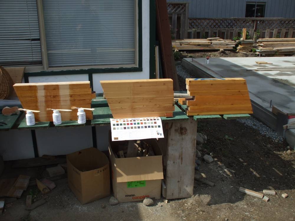 We found a product made right here in Vancouver BC, CBR Products, and ordered some samples. Then the challenge was to pick the right tint. Laura finally decided on Sequoia and ordered a five gallon can. | |||