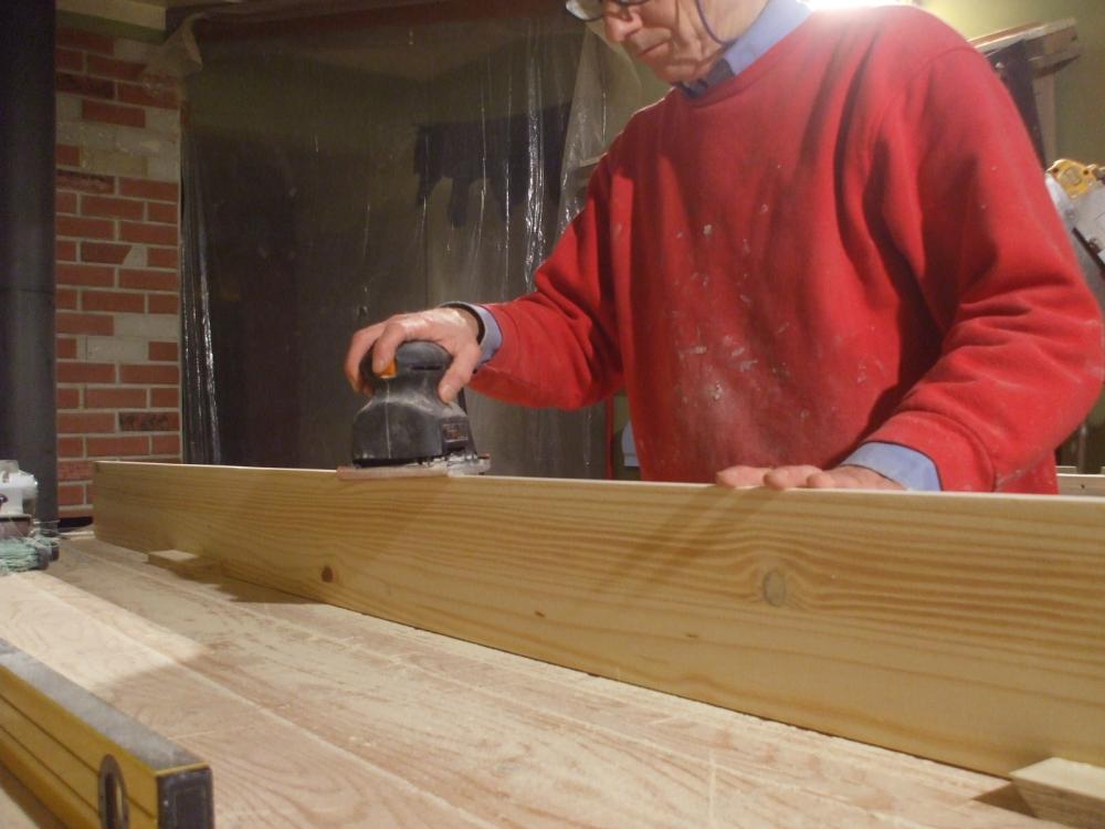 Banister required a 90 degree butt-joint. Newspaper is easy to sand off and prevents the work from being glued to the table. | |||